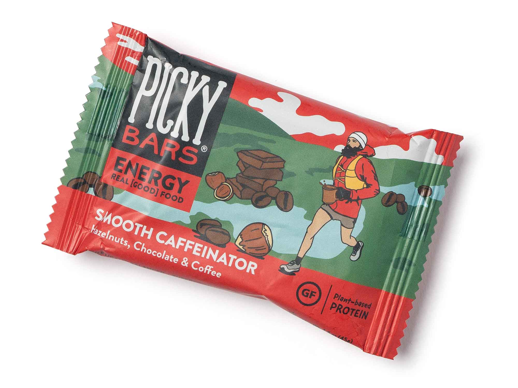 (Pickybars.com; $20/10 bars)—11mg of caffeine